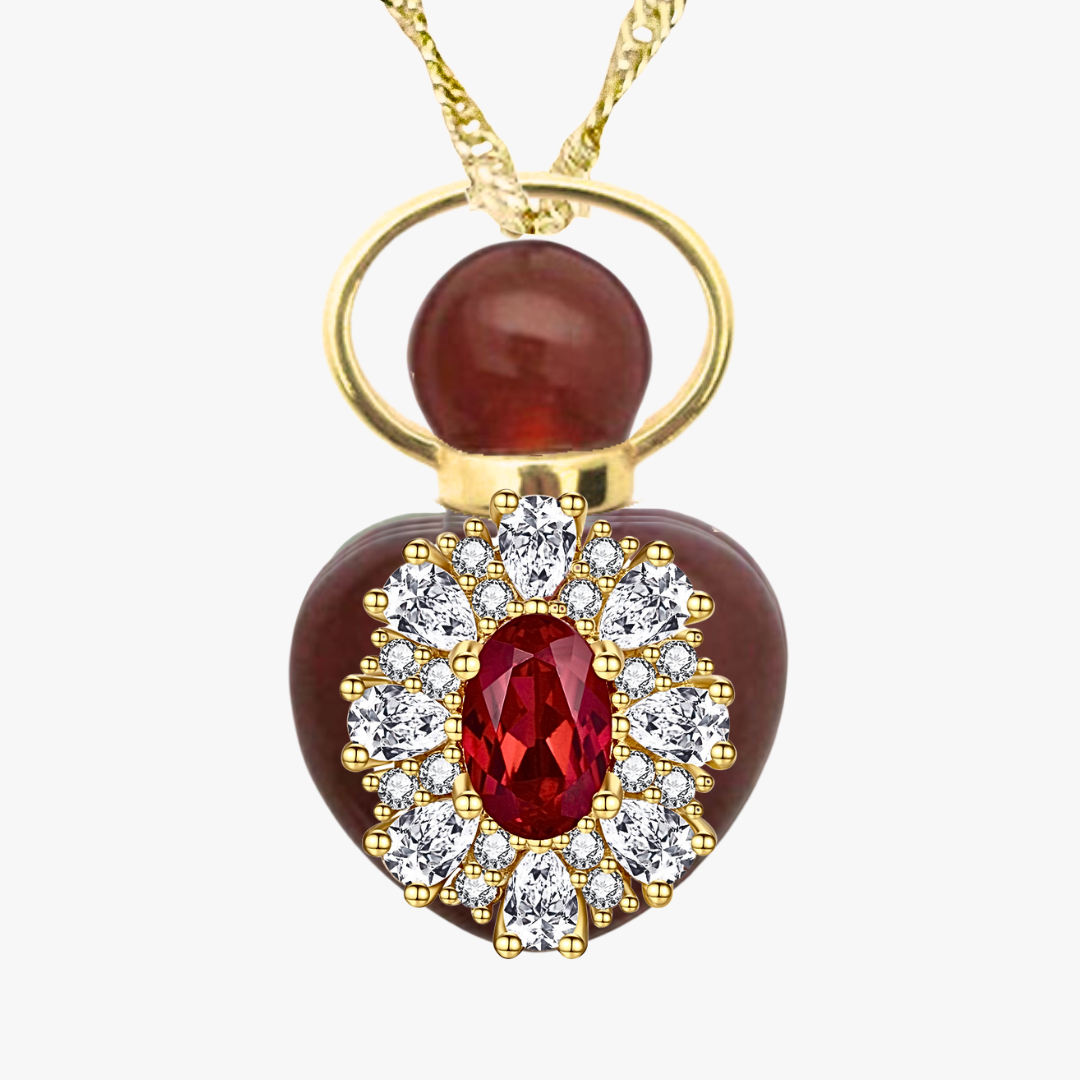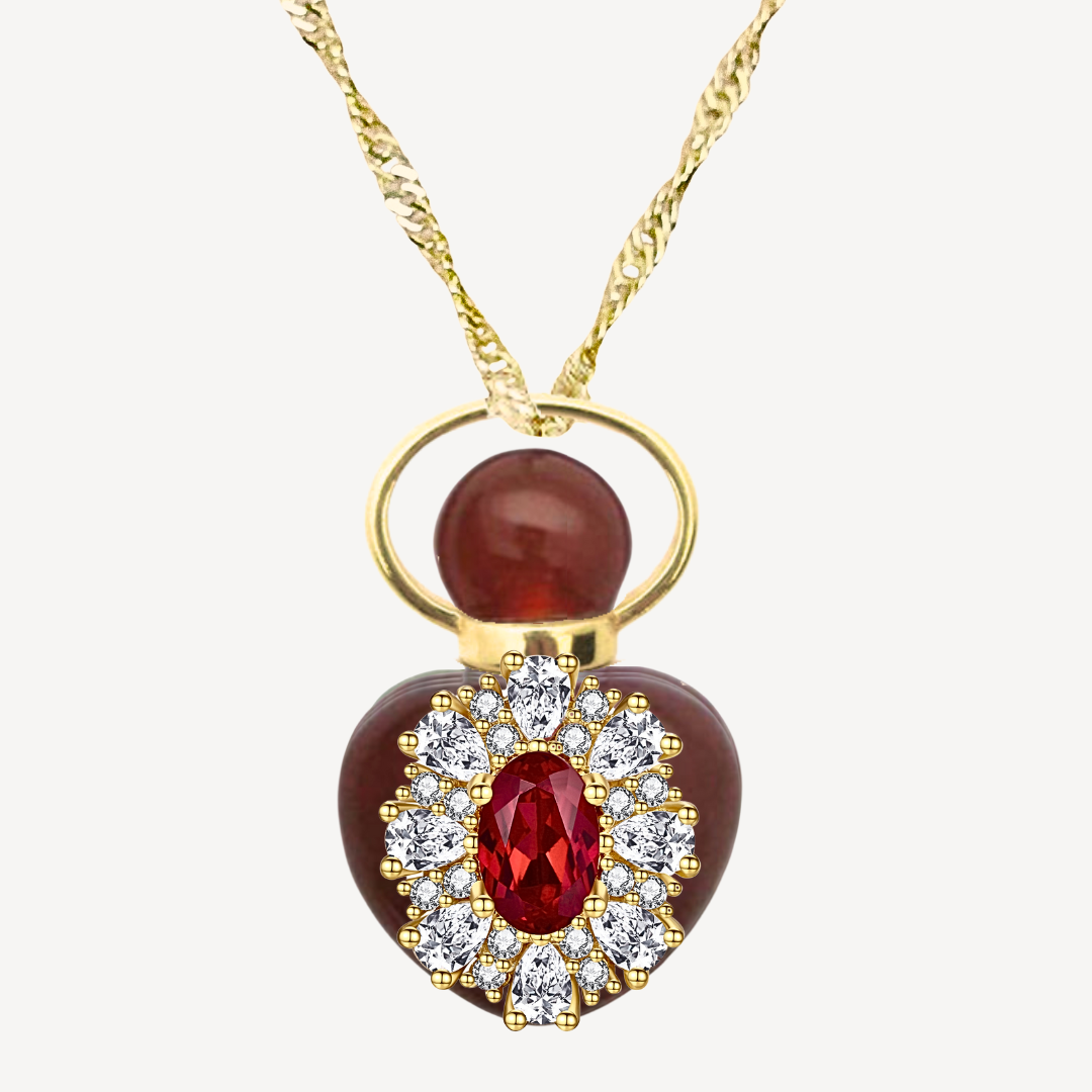 Step into a world of vibrant passion and boundless creativity with our Red Ruby and Carnelian Perfume Amulet Pendant. Inspired by the legendary Empress Eugenie, whose passionate spirit and innovative style redefined an era, this pendant invites you to discover your creative talents, unleash your own unique artistic flair and live with strong purpose.