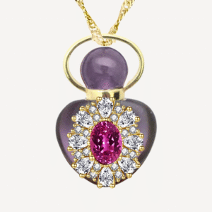 “Princess Diana’s legacy is profoundly tied to her compassion, empathy, and humanitarian efforts. The chosen stones—pink sapphire, symbolizing wisdom and royalty in love, and rose quartz, representing unconditional love—harmoniously create a powerful amulet for kindness and self-love.”